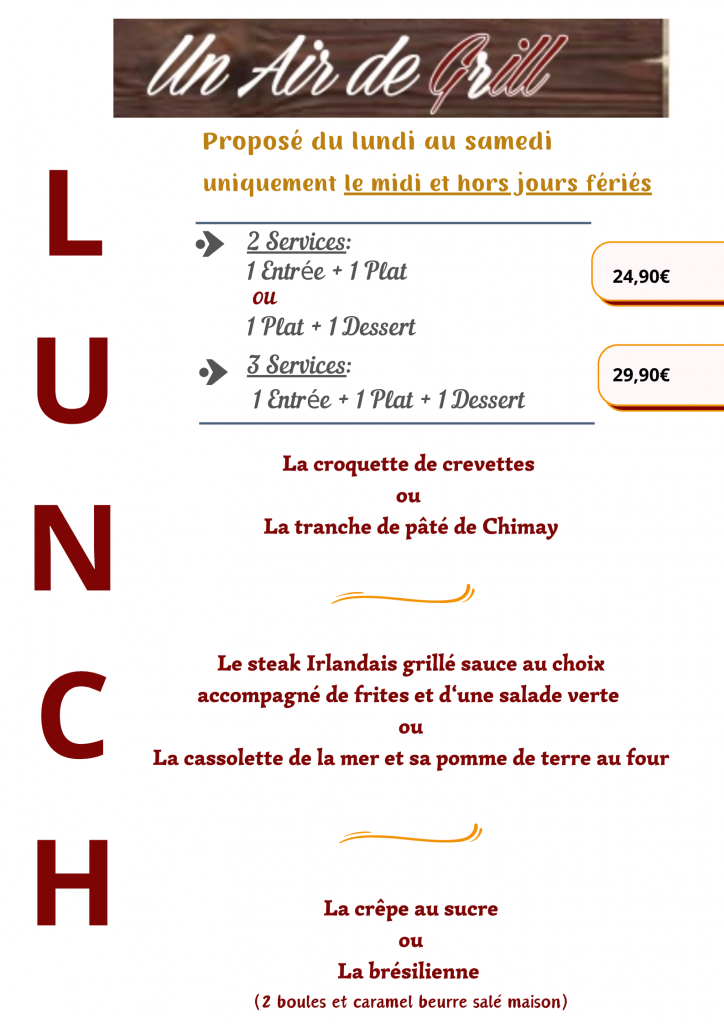 Lunch du midi & Menus*